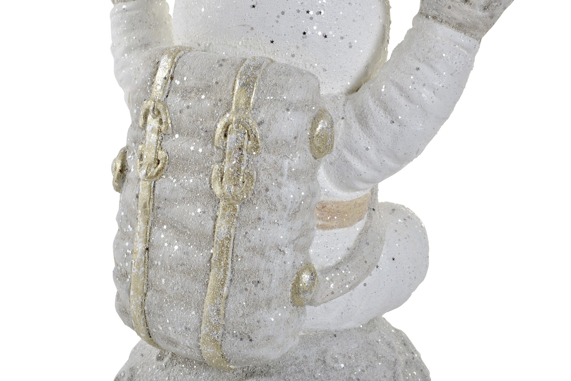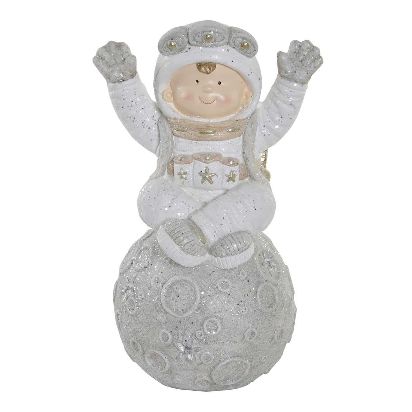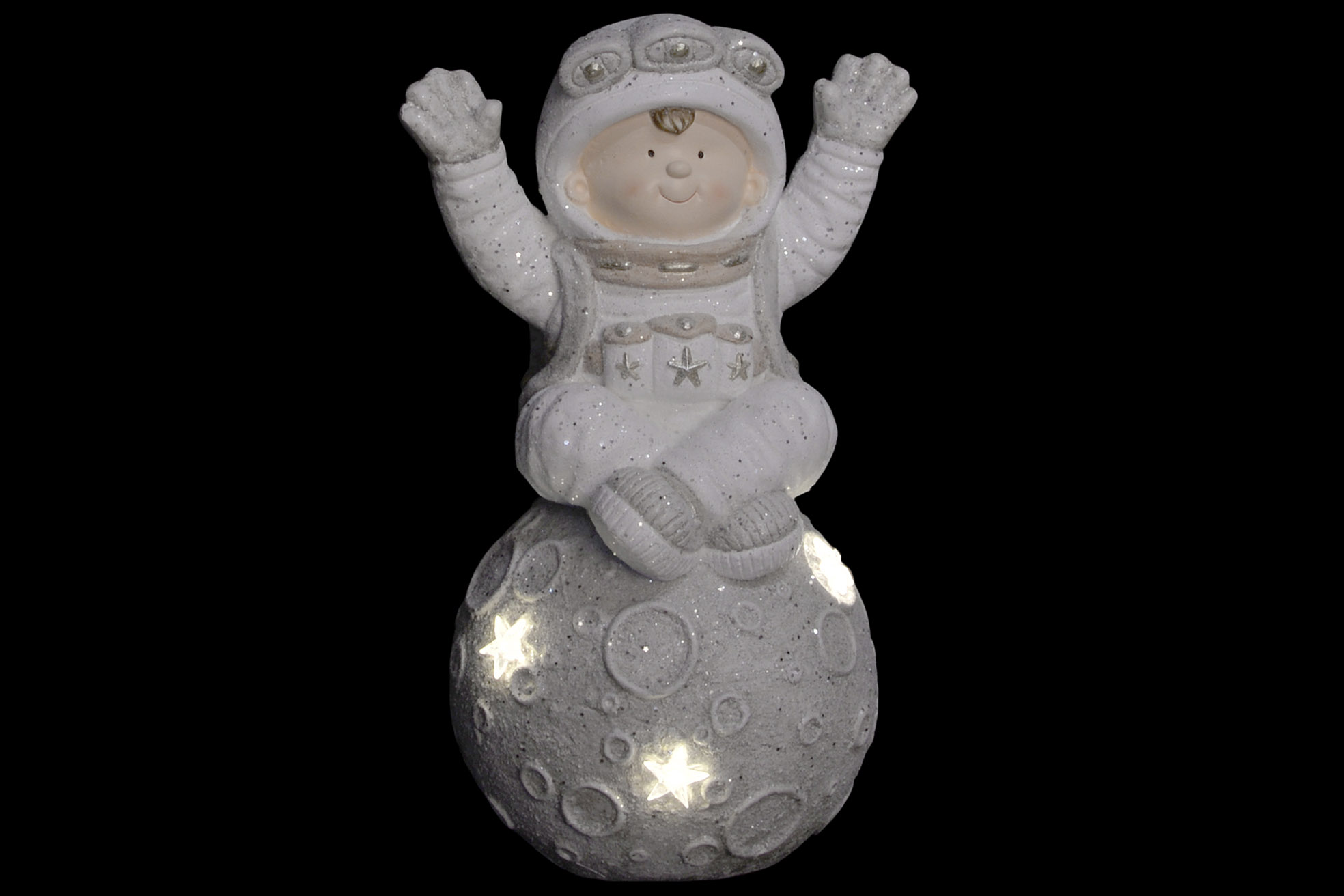 Astronaute lumineux en fibre de verre gris et blanc.