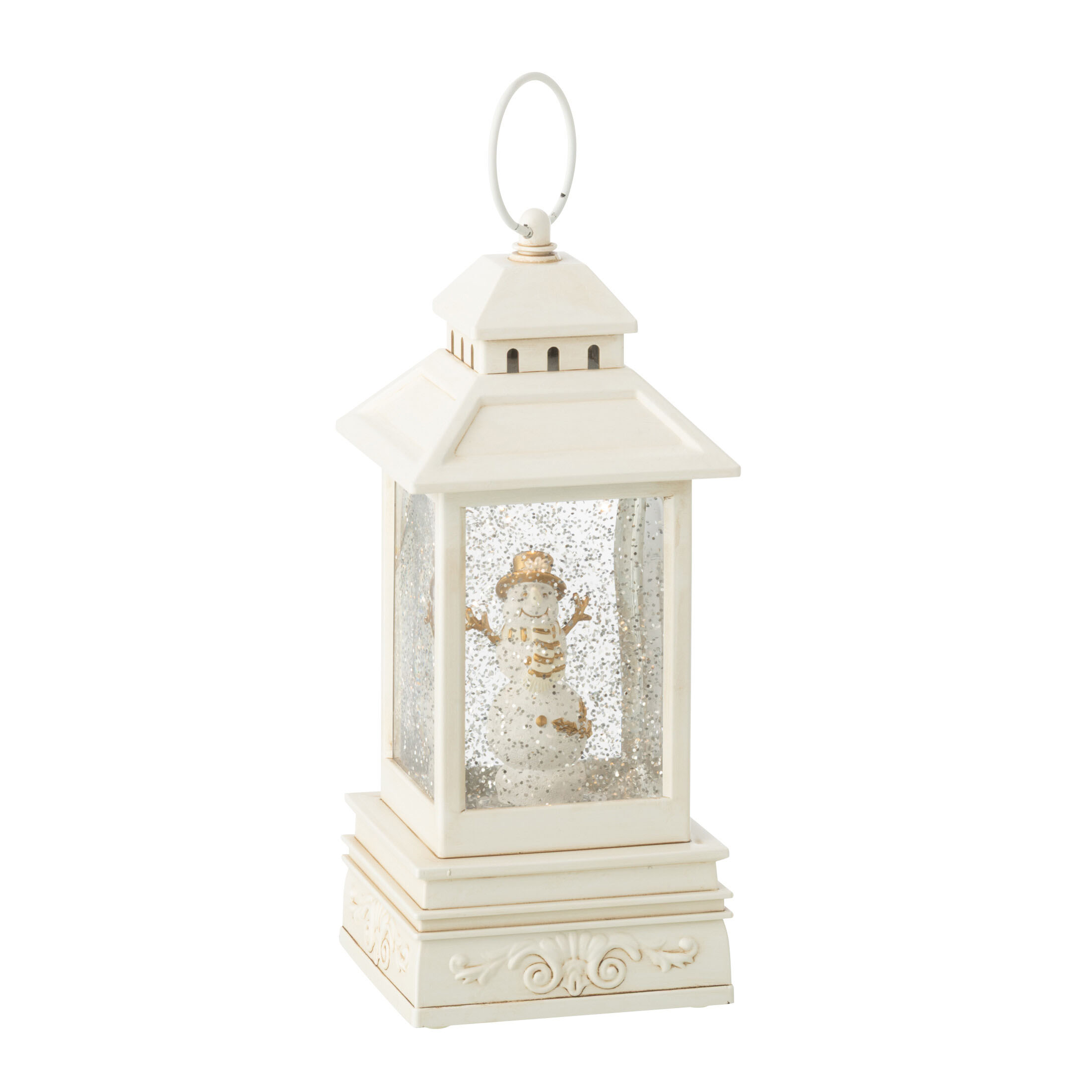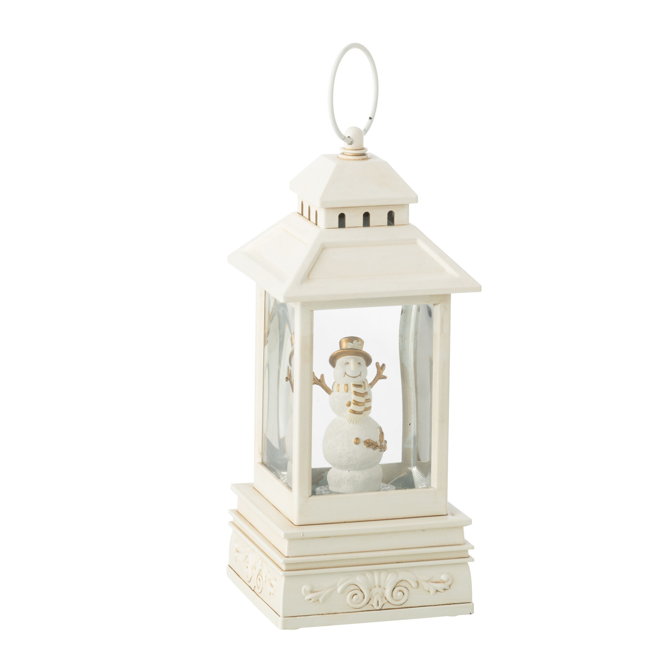 Lanterne de Noël en résine blanc et doré.